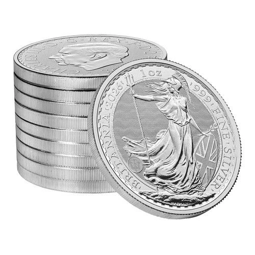 Das Motiv der Britannia auf der Motivseite der gleichnamigen Silbermünzen bedeutet die Personifizierung der britischen Inseln. Von 1987 bis 1996 wurde stets dasselbe Motiv der Britannia auf den gleichnamigen Silbermünzen abgebildet. Dieses besteht aus der stehenden Britannia mit Dreizack, Schild und Helm. Die Motive sind stets von einem gezackten Rand eingefasst. In der Randinschrift sind die Wörter „BRITANNIA", das Prägejahr „2026", das Feingewicht und der Feingehalt „1oz 999 FINE SILVER" zu lesen. Unterhalb der Briannia ist beim näheren Hinschauen der Name „NATHAN" zu erkennen. Dies ist der Name des Künstlers Philip Nathan, der das Motiv dieser Münze 1987 entworfen hat.