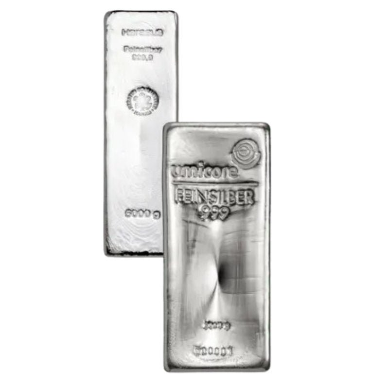 Sie erhalten je nach Verfügbarkeit einen 5 Kilo Silberbarren von diversen LBMA-zertifizierten Herstellern. Darüber hinaus sind unter diesem Artikel nur Silberbarren verfügbar, die lose oder ohne Zertifikat angekauft worden sind. Auch Barren, die weder Zertifikat, noch eine Verpackung besitzen, sind unter diesem Artikel erhältlich.