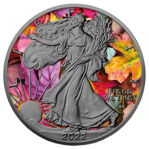 Sammlermünze Silber Eagle „Herbst“ vom Hersteller Art Color Collection. Der Herbst ist ein Zeichen für Fülle, Reifung und Ernte. Es ist die Zeit des Loslassens und des Befreiens von Belastungen.