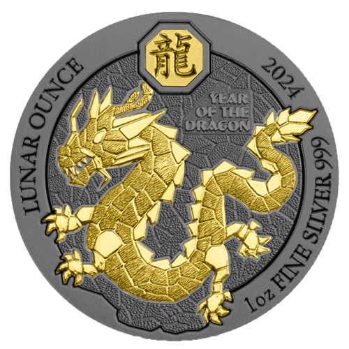 Sammlermünze Jahr des Drachen in Gold von dem Hersteller Art Color Collection. Menschen, die im Jahr des Drachen geboren sind - 1976, 1988, 2000, 2012 und 2024 - werden oft als großzügig, charismatisch und natürliche Führungspersönlichkeiten beschrieben.