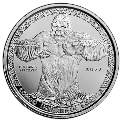 Die Kongo Gorilla Silbermünze wird seit 2015 von der Scottsdale Mint in den USA produziert. Ausgabeland ist die Republik Kongo. Da der Kongo früher eine belgische Kolonie war, wird der Nennwert in Francs angegeben.